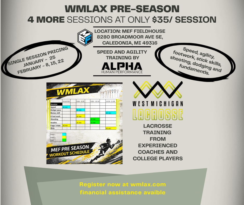 Preseason: Jan-Feb (6 sessions at max effort Field house)